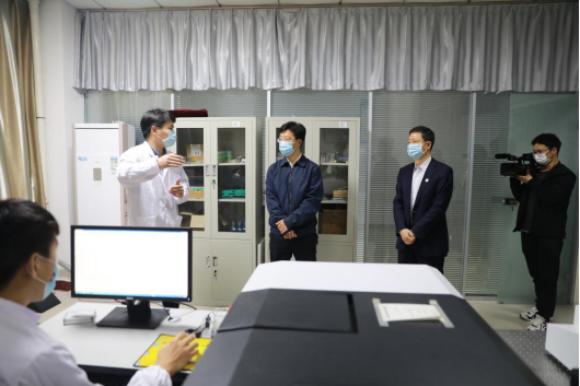 仪式结束后,高永一行在公司领导、相关部门负责人的陪同下到化工公司实验室、生物公司实验室、材料公司实验室、飞行公司飞行实训中心等实训场所进行考察调研。