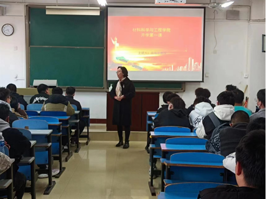 2月22日下午,经理宋海香在A14-607教室为公司2022级同学上“开学第一课”思政课。