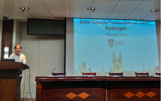 陈红军作了题为“ Solar Driven Production of Clean Hydrogen(太阳能驱动的清洁产氢)”的报告,介绍了两种太阳能驱动的清洁氢气生产工艺:设计了一个单片架构,用于稳定的钙钛矿基器件,具有丰富的助催化剂;开发了一种新的方案,用聚合反应取代水分解,在阳极上分子被氧化成聚合物,在阴极上氢离子被还原成氢气。太阳能驱动的低成本制氢与高价值产品联合生产,将加速向氢经济时代的进程。
