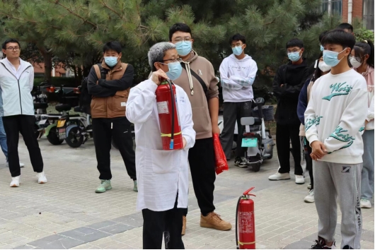 实验中心主任崔朝军为师生讲解灭火器使用方法