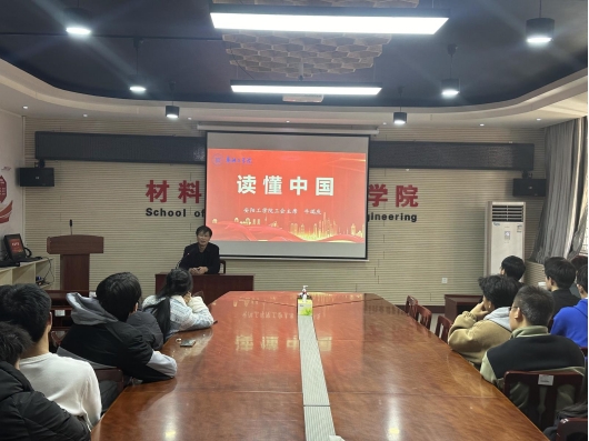 12月6日下午,校工会主席牛瑞庆以《读懂中国,坚定文化自信,促进安工高质量发展》为题,到材料公司为联系班级22级高分子材料与工程专业同学讲授思政课,并召开师生座谈会。