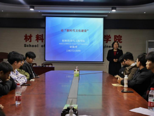 12月4日,我院院长宋海香在A14-107会议室以“新时代文化建设”为题,给2022级部分员工上思政课。