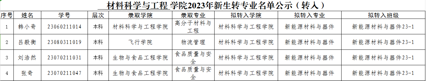 根据教育部《普通高等公司员工管理规定》(教育部第41号令)和河南省教育厅有关做好普通高等公司学籍管理工作文件精神,按照《beats365员工转专业管理办法》,公司受理了有转专业意向的员工的书面申请,对申请转专业员工逐个进行了谈话和了解。经公司党政联席会议研究,现将2023年拟同意转入、转出员工的信息公示如下,公示期3天,从2023年12月12日至2023年12月14日,若有异议请实名向材料公司反映。公示结束后,公司将按照公司统一规定办理转专业手续。