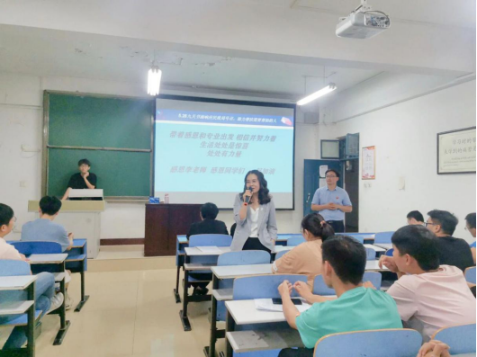 李国云作总结讲话,她指出此次讲座使同学们进一步地了解了当下的就业和创业形势,为进一步推动毕业生就业工作奠定了良好的基础;她希望同学们树立正确的就业观,并表示公司将会竭尽全力确保毕业生顺利就业、高质量就业。