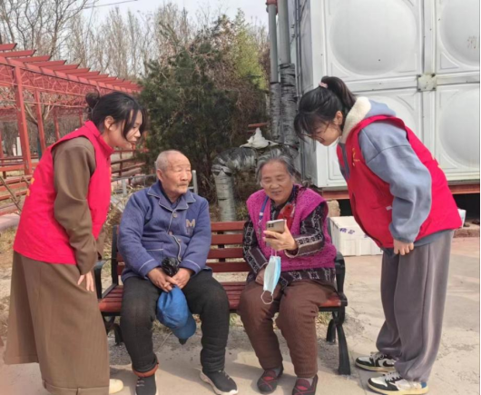党员张玟、李素雅陪老人聊天