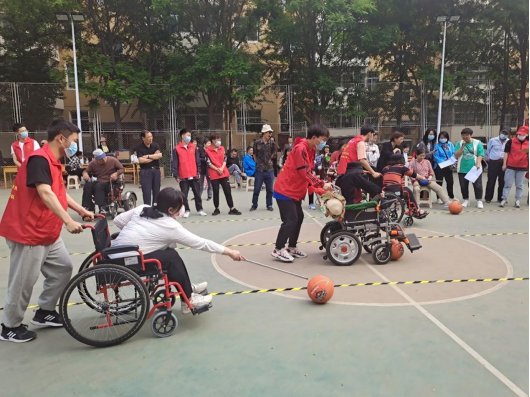 5月12日下午,全体志愿者在校门口集合后乘公交前往位于我市彩虹路社区网通小区的活动场地。到达场地后,工作人员为志愿者们做了活动介绍,随后大家按照分组开始了志愿服务活动。一部分志愿者参与搬运比赛用具,另一部分志愿者帮助参赛的残障人士做好比赛准备。在志愿者们的积极协助下,经过激烈的角逐,本次趣味运动会圆满结束,志愿者们的表现得到了参赛者的一致好评。
