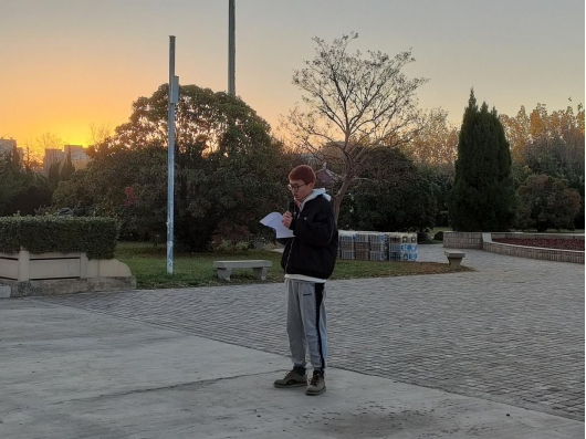 七时十分,升旗仪式正式开始。校国旗护卫队迈着整齐的步伐,护送国旗走向升旗台。在雄壮的国歌声中,鲜艳的五星红旗冉冉升起,在场的同学们神情严肃,敬礼仰注,向庄严神圣的国旗表达最崇高的敬意。升旗仪式结束后,员工会主席董麟以“请党放心、强国有我”为主题发表了国旗下的演讲。董麟号召同学们要以实现中华民族伟大复兴为己任,增强作为中国人的志气、骨气、底气,不负时代,不负韶华!