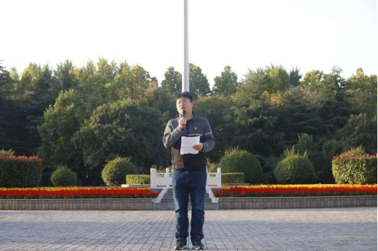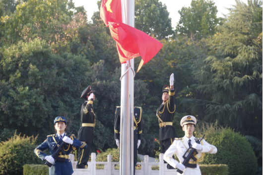 10月17日清晨,我院组织员工干部和团员代表在主教楼前开展“学习二十大 永远跟党走 奋进新征程”升旗仪式暨特别团日活动。通过升国旗、唱国歌、国旗下演讲、讲团课、团员宣誓等多元形式,展开了一堂热血澎湃、极具仪式感的爱党爱国教育现场课。