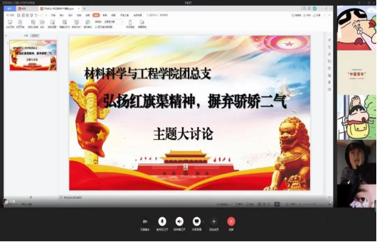 最后,团总支副书记熊思彬总结本次主题讨论活动。他首先肯定了在本次主题讨论活动中大家的发言,他表示,本次线上主题讨论是一次碰撞思想、查找差距的好机会,为大家在今后的学习和生活中“校准前行方向,磨砺健康心性,涵养为民理念,激发奋斗热情”打下了良好的基础。他强调,大家要准确领会“自力更生、艰苦奋斗、团结协作、无私奉献”红旗渠精神的内涵,在学习和工作中,做到谦虚谨慎、戒骄戒躁,摒弃“骄气”,在生活中,做到自立自强、吃苦耐劳,摒弃“娇气”,进一步赓续红色血脉,弘扬延安精神和红旗渠精神,勇担民族复兴大任,做有理想、敢担当、能吃苦、肯奋斗的新时代好青年。