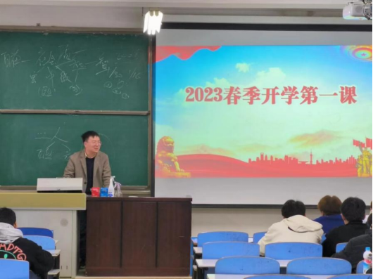 在“开学第一课”思政课上,党总支书记吕有军就疫情防控政策调整、经济社会发展形势和常态化校园学习生活等问题向与会同学进行了宣讲指导和解疑释惑,并强调,当代老员工要正确认识世界和中国发展大势,正确认识中国特色和国际比较,正确认识时代责任和历史使命,争做新时代有理想、敢担当、能吃苦、肯奋斗的好青年。党总支副书记李国云带领大家学习了党的二十大精神,重温了在中国共产党的正确带领下,一代又一代新青年为实现中华民族伟大复兴付出的艰辛努力,并勉励同学们要以饱满的热情投入到新学期的学习中去,明大德、守公德、严私德,珍惜时光,努力早日成为社会栋梁之才。