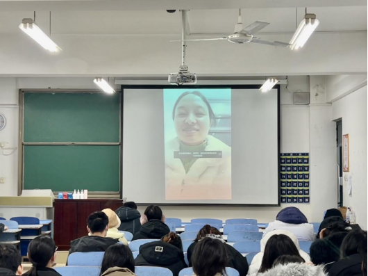 会上,郭玉霞首先为大家分析了当前的就业形势,强调在当前就业形势下,毕业生应树立正确的择业观,不仅要看重薪酬待遇,更要注重个人兴趣和职业发展前景。她鼓励毕业生们勇敢追求自己的梦想,积极面对挑战,坚持自我,不断提升自我。随后,2023届毕业生黄钰惠通过在线视频的形式向学弟学妹们分享了她的求职经验和工作感悟。她表示,择业不仅仅是找一份工作,更是规划自己人生的重要一步。她鼓励学弟学妹们要有自己的职业规划,不要盲目跟风,要根据自己的兴趣和特长选择适合自己的工作。